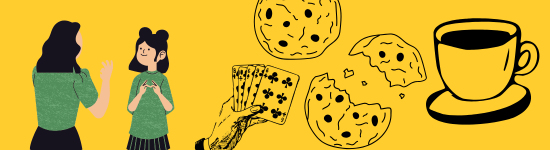 Bei diesem Treffpunkt kann man andere Menschen treffen, gemeinsam Kaffee trinken und Guezli essen, und Spiele spielen.